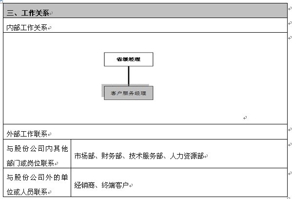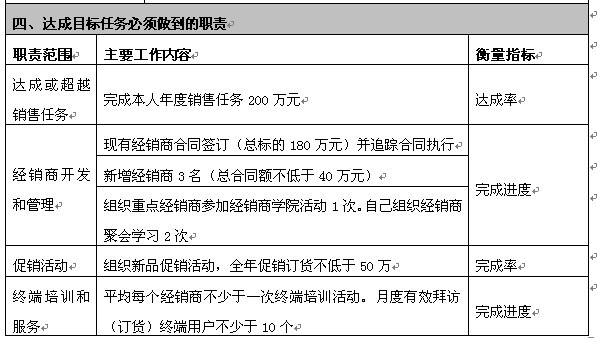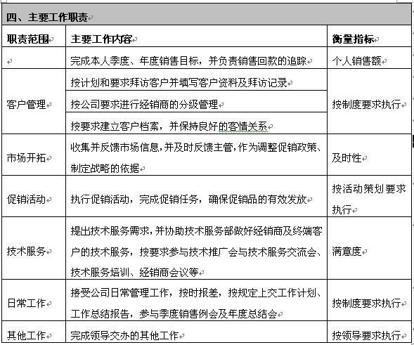 上述案例的結(jié)論是:崗位說明書的實(shí)際功能是讓銷售人員明白自己為了達(dá)成目標(biāo)要做什么?公司內(nèi)部有哪些資源可以支持他達(dá)成目標(biāo)?除此兩方面外的其它內(nèi)容,對于崗位操作人員都是無效的。因此,崗位說明書的格式及內(nèi)容,做到簡明有效就好。