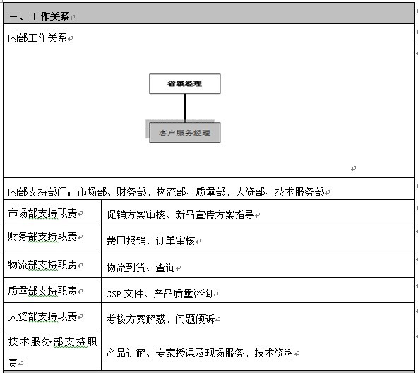 二、編寫銷售崗位說明書,必須遵循“源于崗位一線”的原則。三個(gè)要求:(1)誰明白(市場特點(diǎn):產(chǎn)品銷售處在的階段、產(chǎn)品擁有的終端用戶和購買習(xí)慣、經(jīng)銷商的首要需求、銷售活動(dòng)組織形式)、誰起草,如果人力資源部門是起草人,就必須深入到銷售一線崗位了解市場情況再打草稿;(2)與銷售人員的實(shí)際能力匹配(閱歷和能力);(3)明確銷售支持部門(人員)的職責(zé)(姓名、聯(lián)系方式)。